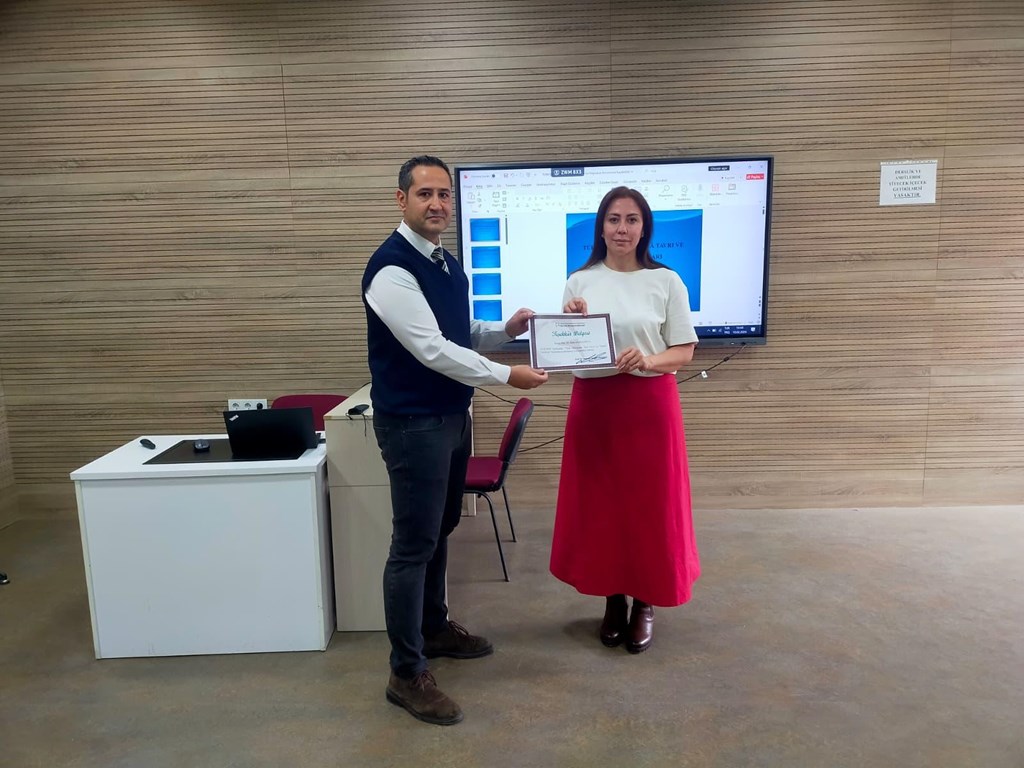 10.02.2026 tarihinde Doç. Dr. Banu GEBOLOĞLU'nun hazırladığı İcra Tavrı ve Temel Unsurları sunumu gerçekleştirildi.Doç. Dr. Banu GEBOLOĞLU'nun sunumunda; icra, tavır, ses ve ses sağlığı üzerine öğrencilere yararlı bilgiler verildi. Sunumu hazırlayan hocamıza teşekkür belgelerini Konservatuvar Müdürü Sayın Prof. Dr. Mehmet Serkan UMUZDAŞ takdim etti.